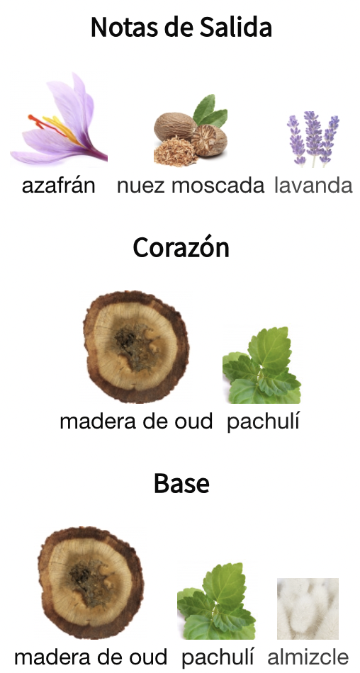Salida: Azafrán 🌾 · Lavanda 🌿 · Nuez moscada 🌰