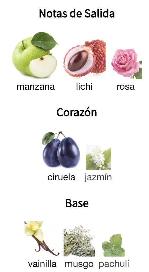 Una fragancia lujosa, equilibrada y magnética, que combina frescura frutal con profundidad oriental.