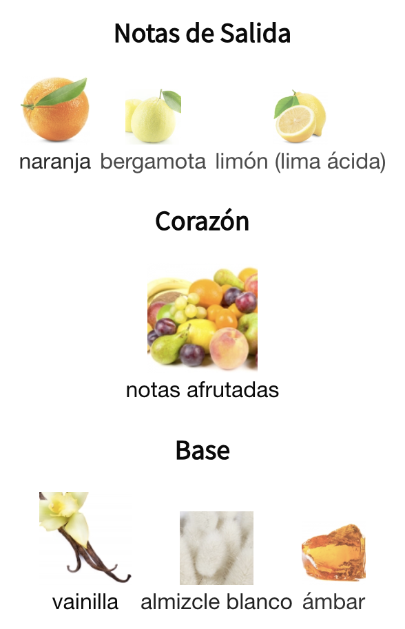 Salida: Piña fresca 🍍 · Bergamota cítrica 🍊 · Manzana verde crujiente 🍏