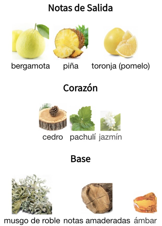 Salida: Bergamota especiada 🍋, Pimienta negra 🔥 y Canela cálida 🌶️