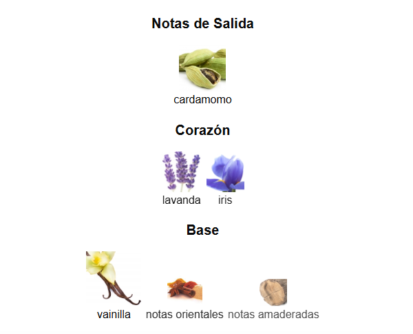 Lavanda 🌸 e Iris 🌿 — un corazón cálido, aromático y elegante que transmite confianza y sofisticación.