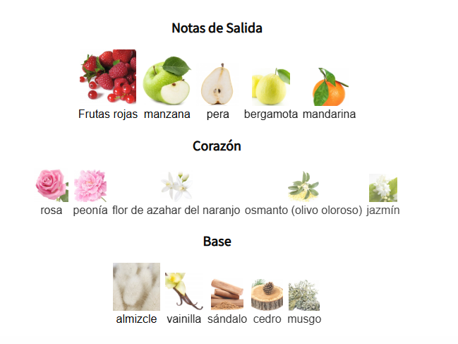 Corazón: Jazmín floral 🌸, Rosa delicada 🌹 y Muguet fresco 🌿