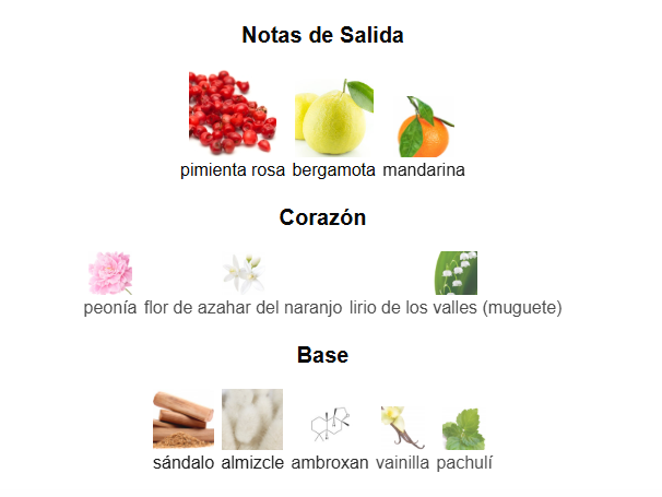 Carácter: Suave, encantador y duradero, ideal para quienes buscan un perfume versátil y lleno de clase.