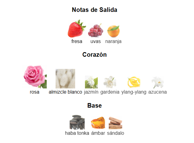 Salida: Rosa fresca y radiante 🌹, Frutas rojas jugosas 🍓 y Acorde cítrico suave 🍋