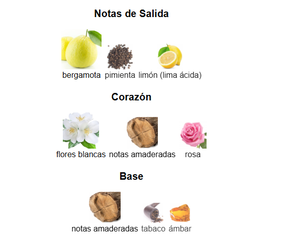 Proyección: Fresco al principio, se suaviza para dejar una huella amaderada y sofisticada.