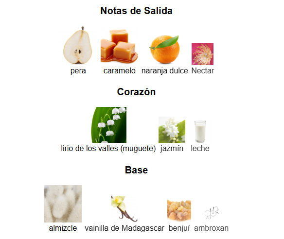 Floral blanco – Dulce – Almizclado – Ámbar – Caramelo – Fresco – Avainillado – Cítrico – Afrutado – Atalccado