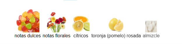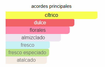 Cítrico · Dulce · Floral · Almizclado · Fresco · Fresco especiado · Atalcado