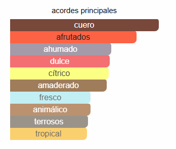 Cuero · Afrutados · Ahumado · Amaderado · Dulce · Cítrico · Fresco · Animálico.