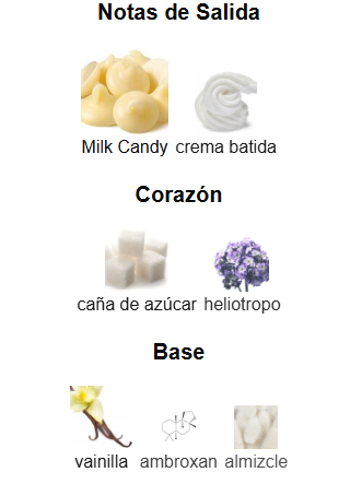Acordes principales: Avainillado, dulce, atalcado, almizclado y ámbar