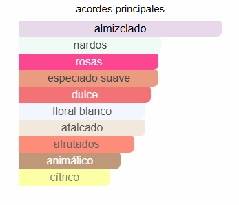 Almizclado 🕊️ | Nardos 🌼 | Rosas 🌹 | Especiado suave ✨ | Dulce 🍬 | Floral blanco 🌸 | Atalcado ☁️ | Afrutado 🍑 | Animálico 🔥 | Cítrico 🍋