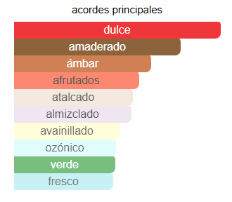 • Acordes principales: Dulce, amaderado, ámbar, afrutado, avainillado, almizclado, verde y fresco